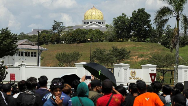 Malaysia - Pndukung mantan PM Malaysia Najib Razak berkumpul di luar Istana Negara. Mereka meminta Raja Malaysia memberikan pengampunan kerajaan kepada Najib Razak.
