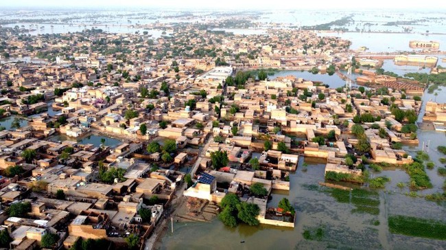 Pakistan - Banjir parah merendam permukiman setelah hujan monsun mengguyur Pakistan. Begini penampakan dari udara banjir yang menewaskan lebih dari seribu orang tersebut.