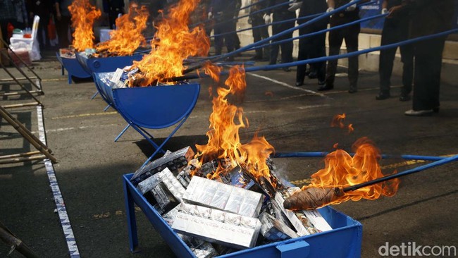 Jutaan Batang Rokok Dibakar, Ribuan Miras Dilindas Alat Berat
