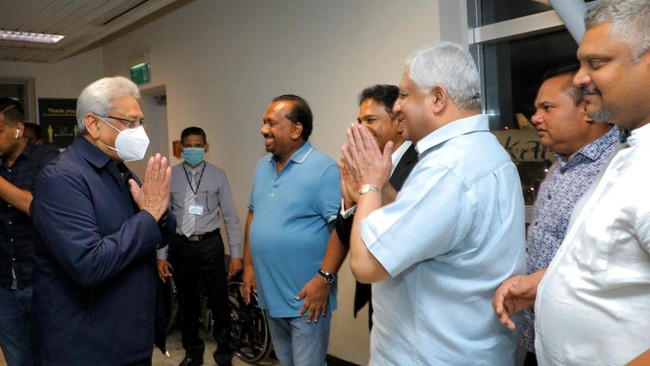 Sri Lanka - Mantan Presiden Sri Lanka Gotabaya Rajapaksa kembali ke negaranya. Dia kembali usai tujuh minggu melarikan diri di tengah krisis ekonomi terburuk Sri Lanka.