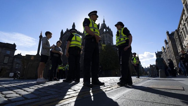 Edinburgh - Jenazah Ratu Elizabeth II akan dipindahkan ke Istana. Jalanan di Skotlandia saat ini di kawal oleh sejumlah polisi.