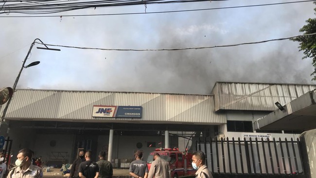 Depok - Gudang JNE Cimanggis di Jalan Pekapuran, Depok, terbakar, Senin (12/9/2022) pukul 04.30 WIB pagi ini. Asap hitam membubung tinggi.