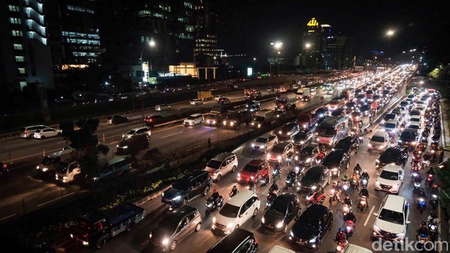 Jakarta - Jalan TB Simatupang yang mengarah ke Fatmawati terpantau macet malam ini. Kemacetan dikarenakan meningkatnya volume kendaraan.