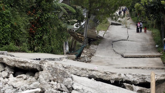 Jalan Beton di Bogor Ini Rusak, Patah dan Ambles gegara Tanah Bergerak
