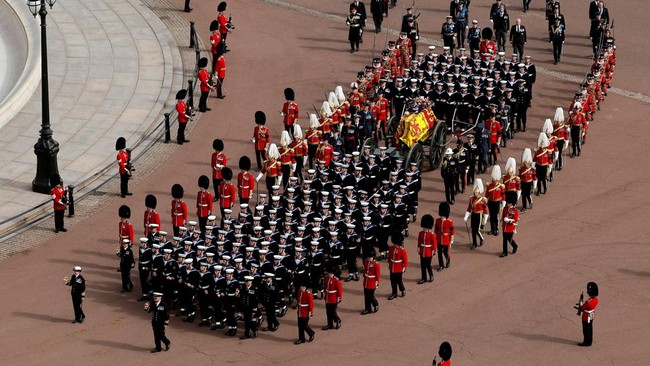 Inggris - Peti jenazah Ratu Elizabeth II dibawa keluar dari Westminster Abbey, London, Inggris, kini dibawa ke Kastil Windsor yang menjadi persemayaman terakhirnya.
