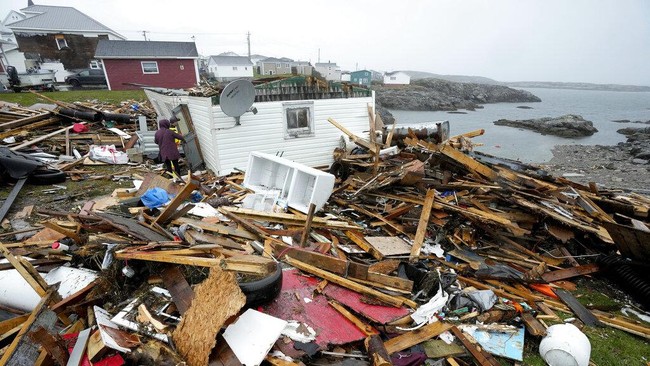 Kanada - Badai Fiona menerjang Kanada Timur. Badai menghantam wilayah tersebut dengan angin kencang dan hujan. Rumah-rumah pun hancur.