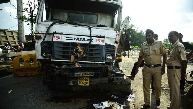 Mumbai - Sebuah truk dumper menabrak 12 mobil, Bus dan pengendara sepeda motor di India. Kecelakaan itu terjadi karna truk melaju sangat kencang.