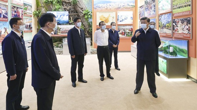 China - Presiden China Xi Jinping akhirnya muncul ke publik setelah beberapa hari 'menghilang' di tengah rumor kudeta politik. Xi terlihat mengunjungi sebuah pameran.