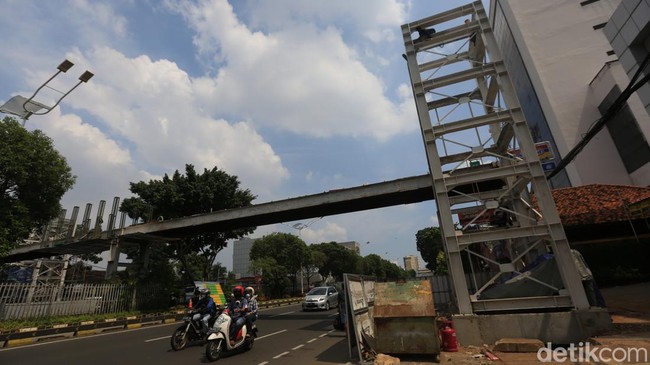 Jakarta - JPO Matraman, Jakarta, tengah dilakukan revitalisasi. Nantinya, JPO ini bakal dipasang lift demi kenyamanan warga.