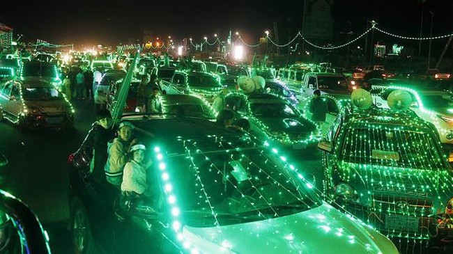 Yaman - Orang-orang Yaman punya cara tersendiri dalam merayakan Maulid Nabi Muhammad SAW. Mereka menghias kendaraan, rumah dan jalan-jalan dengan lampu hijau.
