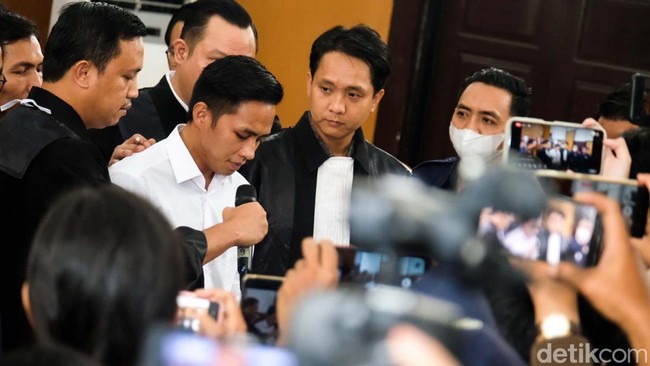 Jakarta - Bharada E menyampaikan permintaan maaf untuk keluarga Brigadir Yosua Hutabarat (Brigadir J). Eliezer menitikkan air mata saat membacakan pernyataannya tersebut.