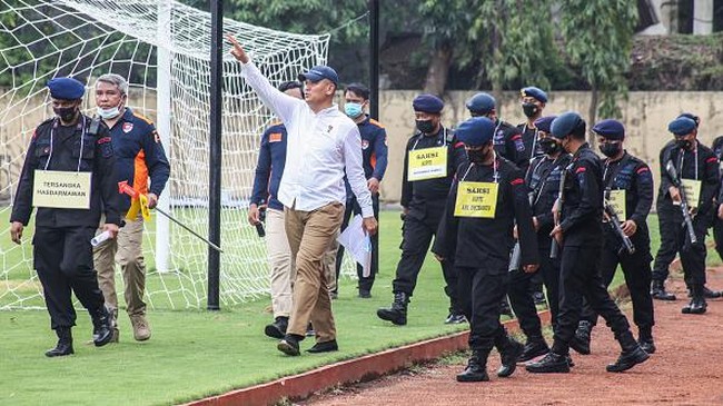 Surabaya - Polda Jawa Timur menggelar rekonstruksi tragedi Kanjuruhan. Dalam rekonstruksi itu, tak ada adegan gas air mata ditembakkan ke tribun.