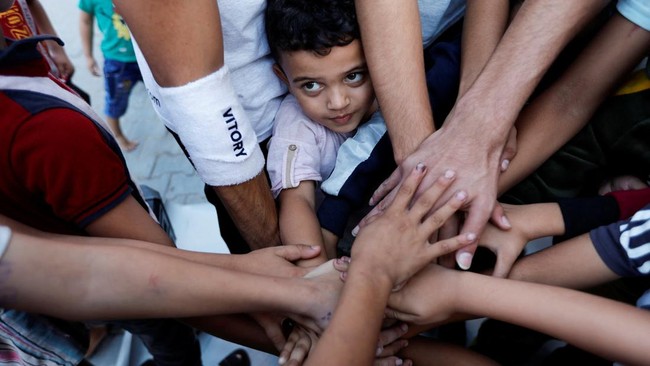 Gaza - Sekelompok anak melakukan breakdance di kamp pengungsi di jalur Gaza. Kegiatan yang pernah dianggap tak bermoral ini menjadi cara menghilangkan trauma perang.
