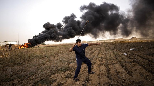 Palestina - Konflik antara Palestina dan Israel terus bergemuruh. Kini para pejuang Palestina melayangkan aksi protes atas serangan pasukan Israel yang menewaskan 5 orang.