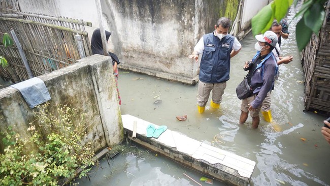 Tulungagung - Banjir merendam ratusan rumah di tiga desa di Tulungagung, Jawa Timur. Gawatnya genangan tersebut bercampur limbah industri.