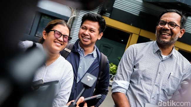 Ekspresi Haris Azhar-Fatia Hadiri Pemeriksaan Kasus 'Lord Luhut'