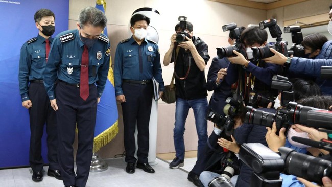 Momen Kepala Polisi Korsel Membungkuk dan Minta Maaf Atas Tragedi Itaewon