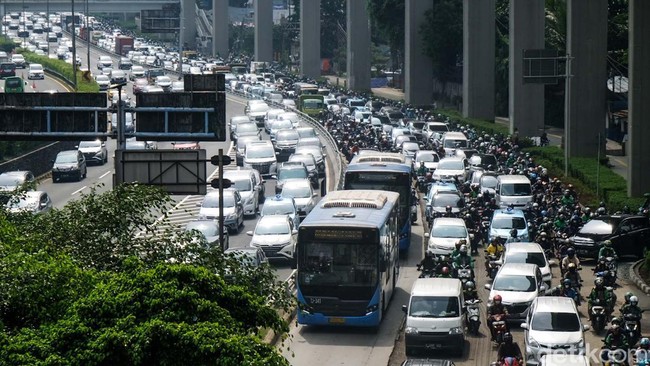 Jakarta - Kemacetan terjadi di Jalan MT Haryono arah Jl Gatot Subroto (Gatsu) pagi tadi. Macet disebabkan meningkatnya volume kendaraan serta jalan bergelombang.