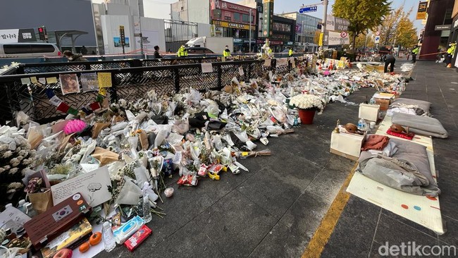 Potret Terkini TKP Halloween Itaewon, Penuh Bunga dan Ucapan Doa