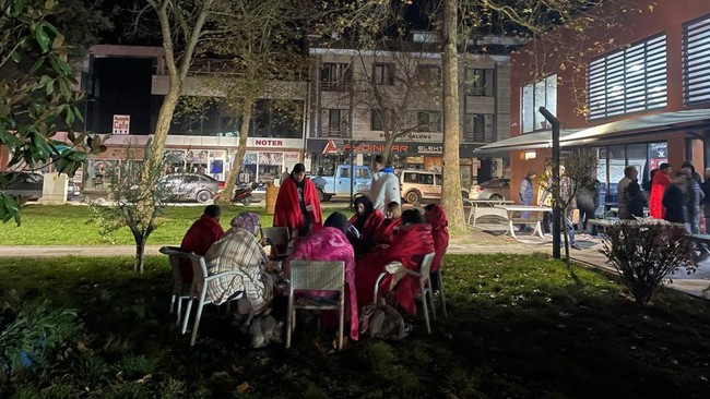 Turki - Gempa bumi berkekuatan M 5,9 mengguncang wilayah Turki bagian barat laut Rabu (23/11). Warga langsung berhamburan keluar rumah di malam musim dingin Turki.