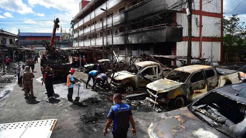 Sisa-sisa Setelah Bom Mobil Meledak di Kompleks Polisi Thailand