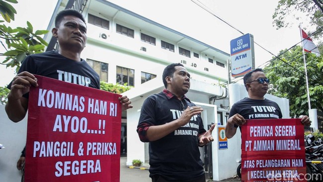 Jakarta - Aliansi Masyarakat Antimafia Tambang Kabupaten Sumbawa Barat (Amanat) datangi Komnas HAM untuk melaporkan dugaan pelanggaran HAM oleh perusahaan tambang di NTB.