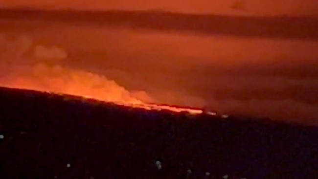 Gunung api terbesar di dunia, Mauna Loa di Hawaii, meletus pada Senin (28/11/2022) waktu setempat. Lava cair terlihat mengalir dari puncak gunung, sementara kepulan asap menutupi area sekitar Mauna Loa. (Reuters/Magahawaii)