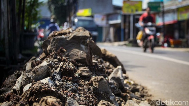 Sisa galian got menumpuk di pinggir Jalan Ki Hajar Dewantara, Kecamatan Ciputat, Kota Tangerang Selatan, Provinsi Banten, Kamis (1/12/2022) pukul 10.00 WIB.