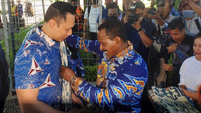 NTT - Ketum Partai Demokrat Agus Harimurti Yudhoyono (AHY) melakukan safari ke Kupang, NTT. AHY disambut dengan tarian khas Sumba.