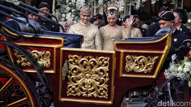 Yogyakarta - Akad nikah putra Presiden Jokowi, Kaesang Pangarep dengan Erina Gudono telah selesai. Keduanya pun menuju Royal Ambarrukmo dengan menaiki kereta kuda.