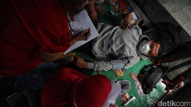 Tim Dokter Rumah Sakit Pena 98 melakukan pemeriksaan medis terhadap peserta mogok makan di Kantor Komnas HAM, Jakarta, Minggu (18/12/2022).