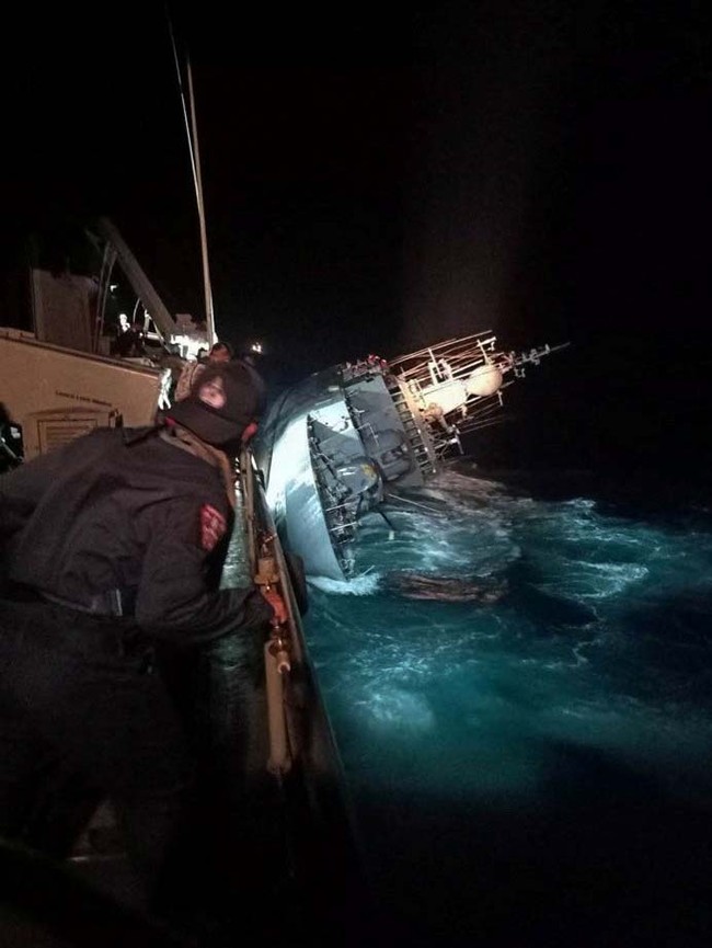 Kapal kelas korvet yang digunakan sejak 1987 tenggelam pada Minggu (18/12/2022) pukul 23:30 waktu setempat. Kapal itu pun miring ke satu sisi.