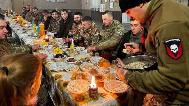 Ukraina - Tentara Ukraina turut merayakan Natal di tengah perang dengan Rusia. Mereka melakukan makan malam mewah di sebuah tempat yang dirahasiakan.