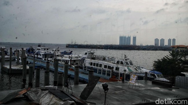 Jakarta - Cuaca buruh menerpa pesisir utara Jakarta, Senin (26/12/2022). Akibatknya, Pelabuhan Muara Angke pun sepi dari wisatawan yang akan menyeberang ke Pulau Seribu.