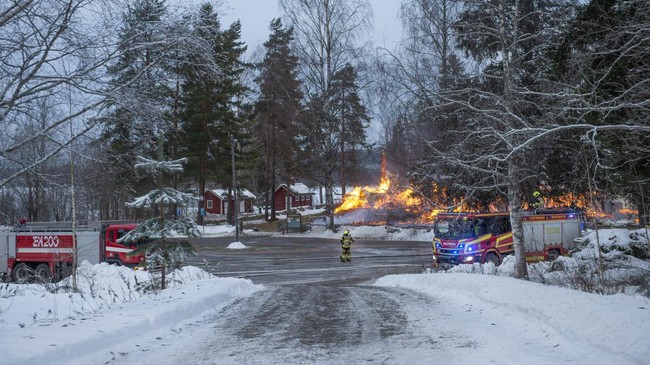 Finlandia - Sebuah gereja kuno yang dibangun tahun 1881 di Rautjarvi, Finlandia, terbakar. Seluruh bangunan gereja dari kayu tersebut hangus.