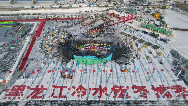 Mudanjiang - Warga mengadakan festival memancing ikan di tengah musim dingin yang melanda wilayah di China. Festival ini diadakan di Danau yang membeku, Danau Jigpo.