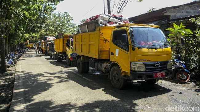 Depok - Sempat ditutup pada kamis (5/1), antrean truk sampah mengular di TPA Cipayug Depok. Nih fotonya.