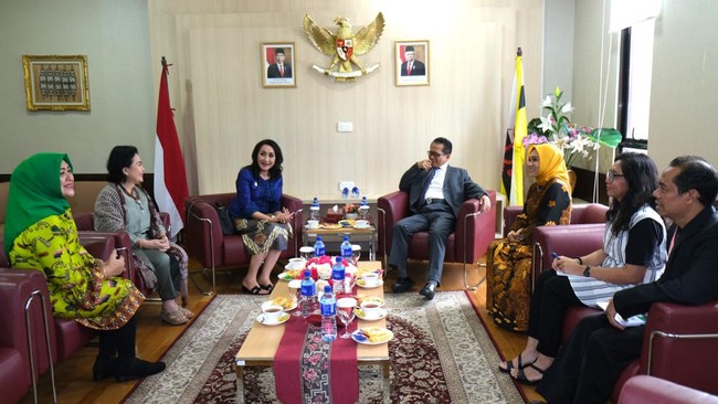 Jakarta - Kongres Wanita Indonesia mengunjungi kantor KBRI Bandar Seri Begawan. Kunjungan Kowani untuk memberikan dukungan pelindungan kepada PMI perempuan.