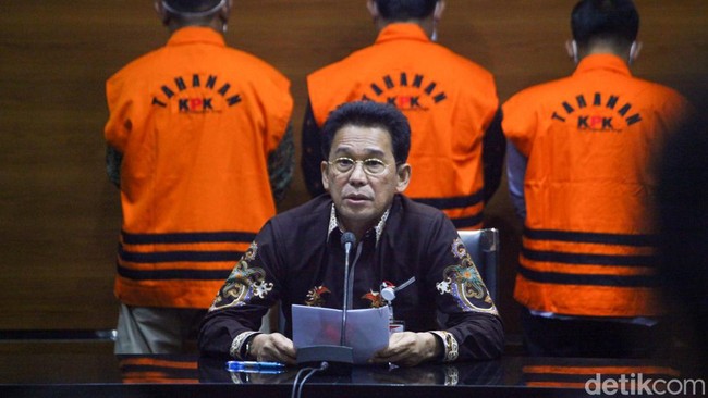 Wakil Ketua KPK Johanis Tanak memberikan keterangan pers soal pengembangan kasus suap ketok palu RAPBD Provinsi Jambi di gedung KPK, Jakarta, Selasa (10/1/2023).