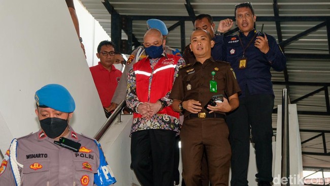 Jakarta - Pelimpahan tahap II Irjen Teddy Minahasa dkk sudah rampung. Usai pelimpahan, para tersangka meninggalkan Kejari Jakbar mengenakan rompi tahanan kejaksaan.