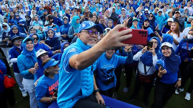 Bogor - Mendag Zulkifli Hasan (Zulhas) hadir di acara Senam Sehat Birukan Langit Indonesia di Lapangan Sempur Kota Bogor, Sabtu (14/1).
