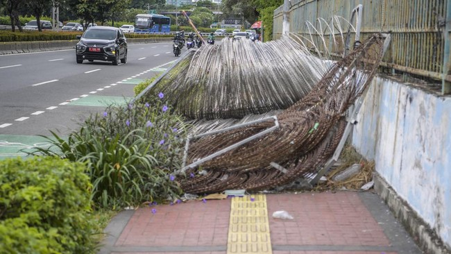Jakarta - Akses pejalan kaki di Jalan Gatot Subroto ini terhalang kawat berduri. Para pengguna jalan yang ingin melintas pun kini jadi terhalang. Gimana sih ini?