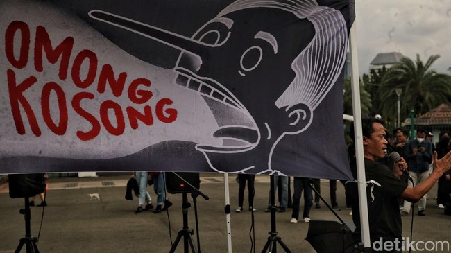 Jakarta - Sejumlah aktivis menggelar aksi Kamisan ke-760 di seberang Istana Negara. Aksi Kamisan kali ini tepat 16 tahun sejak pertama kali digelar pada 18 Januari 2007.