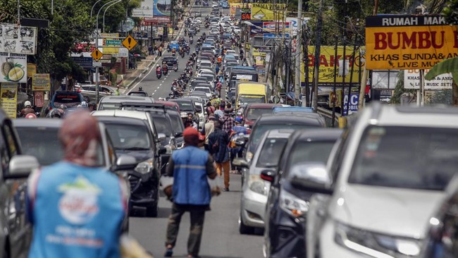 Bogor - Kawasan wisata Puncak Bogor mengalami kepadatan volume kendaraan saat libur Imlek. Polisi pun memberlakukan rekayasa lalu lintas satu arah hingga ganjil genap.