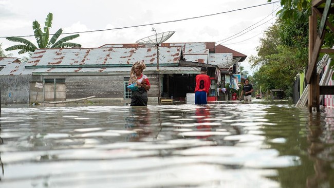 Aceh - Banjir melanda Kampung Tibang di Kecamatan Pidie, Aceh. Buruknya drainase menjadi penyebab banjir.