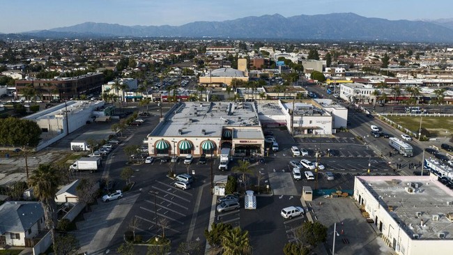 Gambar yang diambil dengan drone ini menunjukkan Star Dance Studio di Monterey Park, California, Minggu (22/1/2023) waktu setempat. (AP Photo/Jae C. Hong)