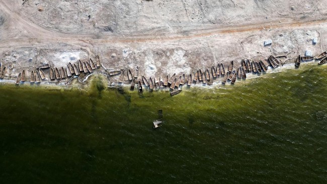 Senegal - Danau Retba di Senegal terkenal dengan sebutan danau pink (Lac Rose). Namun kini air di danau tersebut berubah warna menjadi hijau. Kenapa ya?