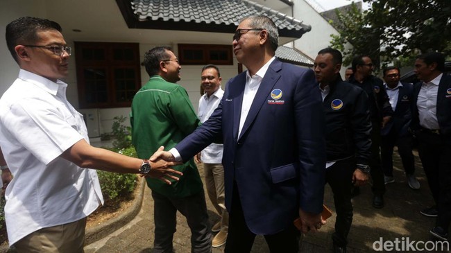 Jakarta - Sejumlah elite Partai NasDem menyambangi kantor Sekretariat Bersama Koalisi Gerindra dan PKB. NasDem disambut elite Partai Gerindra dan PKB.