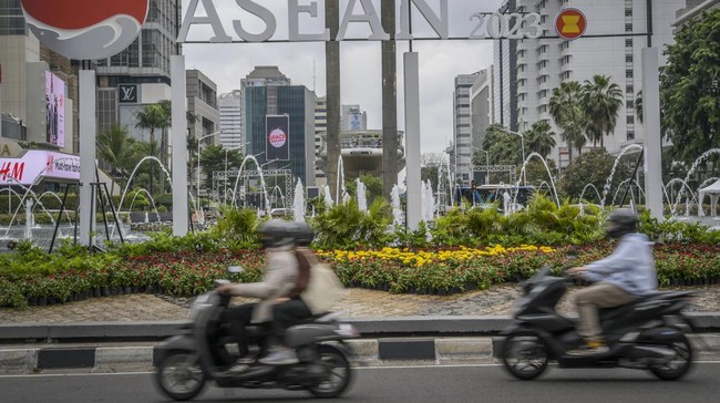 Jakarta - Indonesia akan menjadi tuan rumah bagi perhelatan KTT ASEAN Summit 2023. Logo KTT ASEAN Summit 2023 pun menghiasi kawasan di Bundaran HI, Jakarta Pusat.