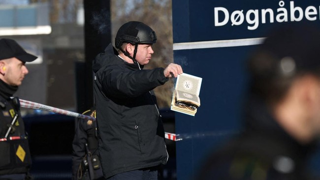 Ini dia potret saat Al-Quran dibakar oleh politisi sayap kanan Eropa, Rasmus Paludan, di depan sebuah masjid di depan kedutaan Turki di Kopenhagen, Denmark, Jumat (27/1/2023). Sebelumnya, pada pekan lalu ia juga sempat membakar Al-Quran di Stockholm, Swedia.